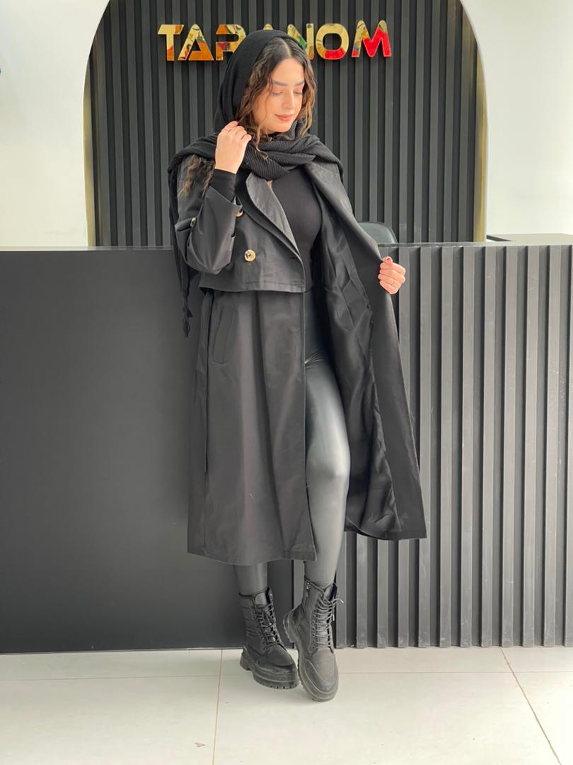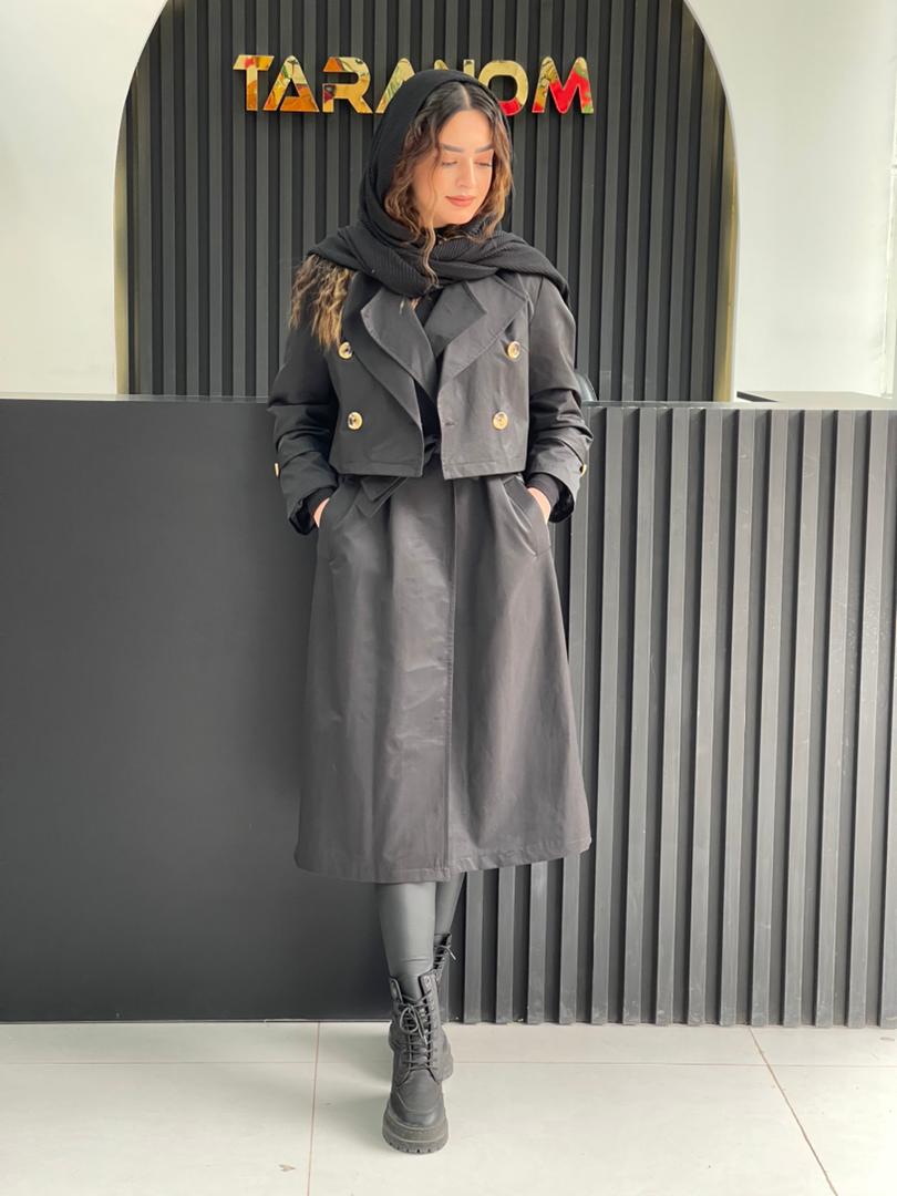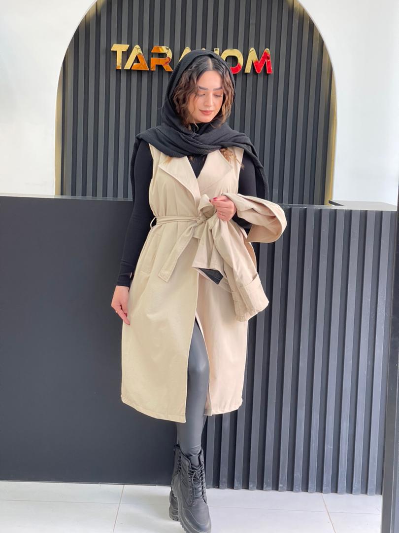 کاپشن لوزی دوزی آستین چرم کد 11309