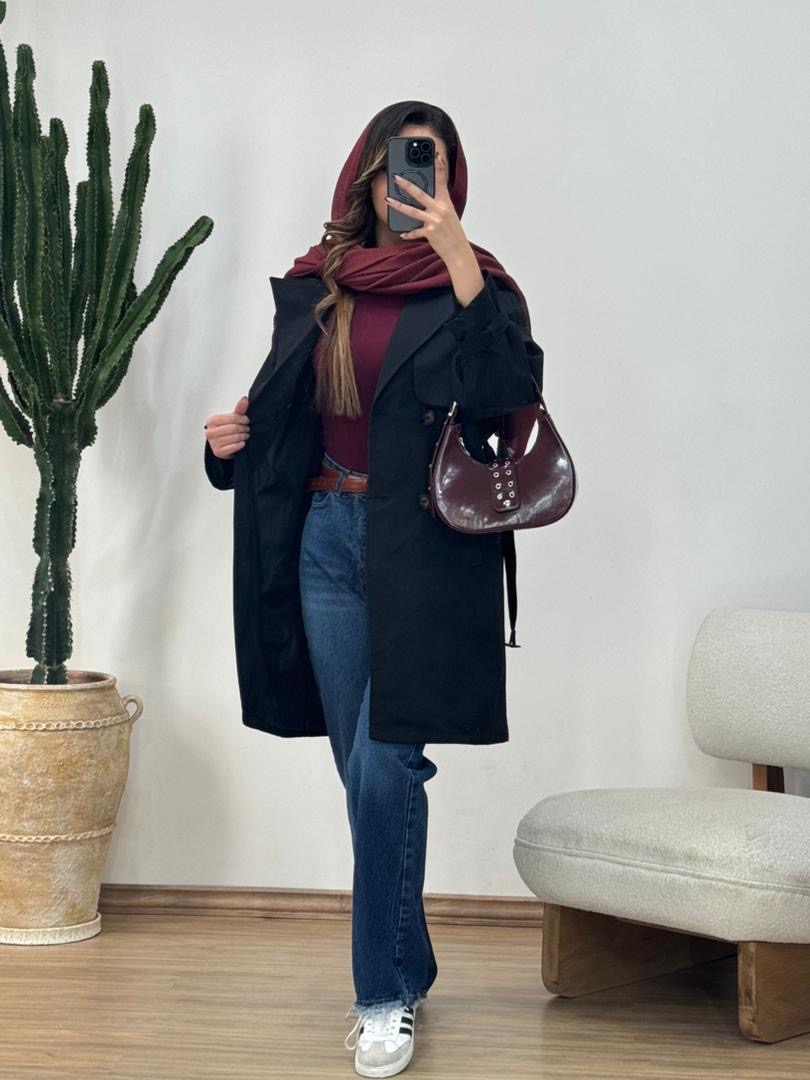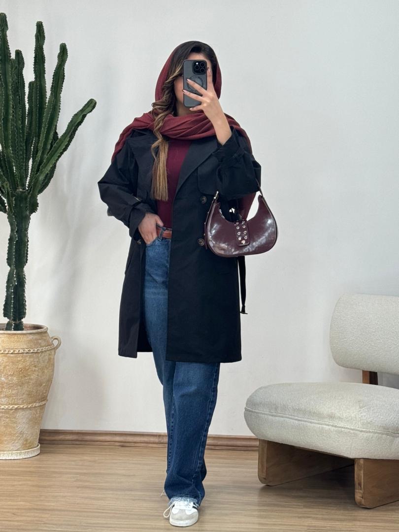 بارونی آستردار ترکیبی با جین آرام کد 12333