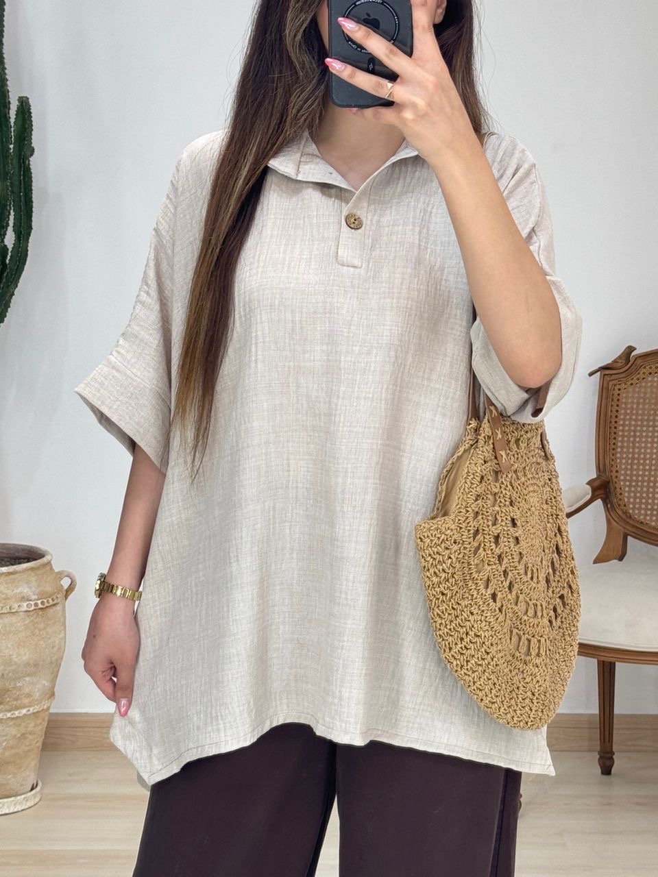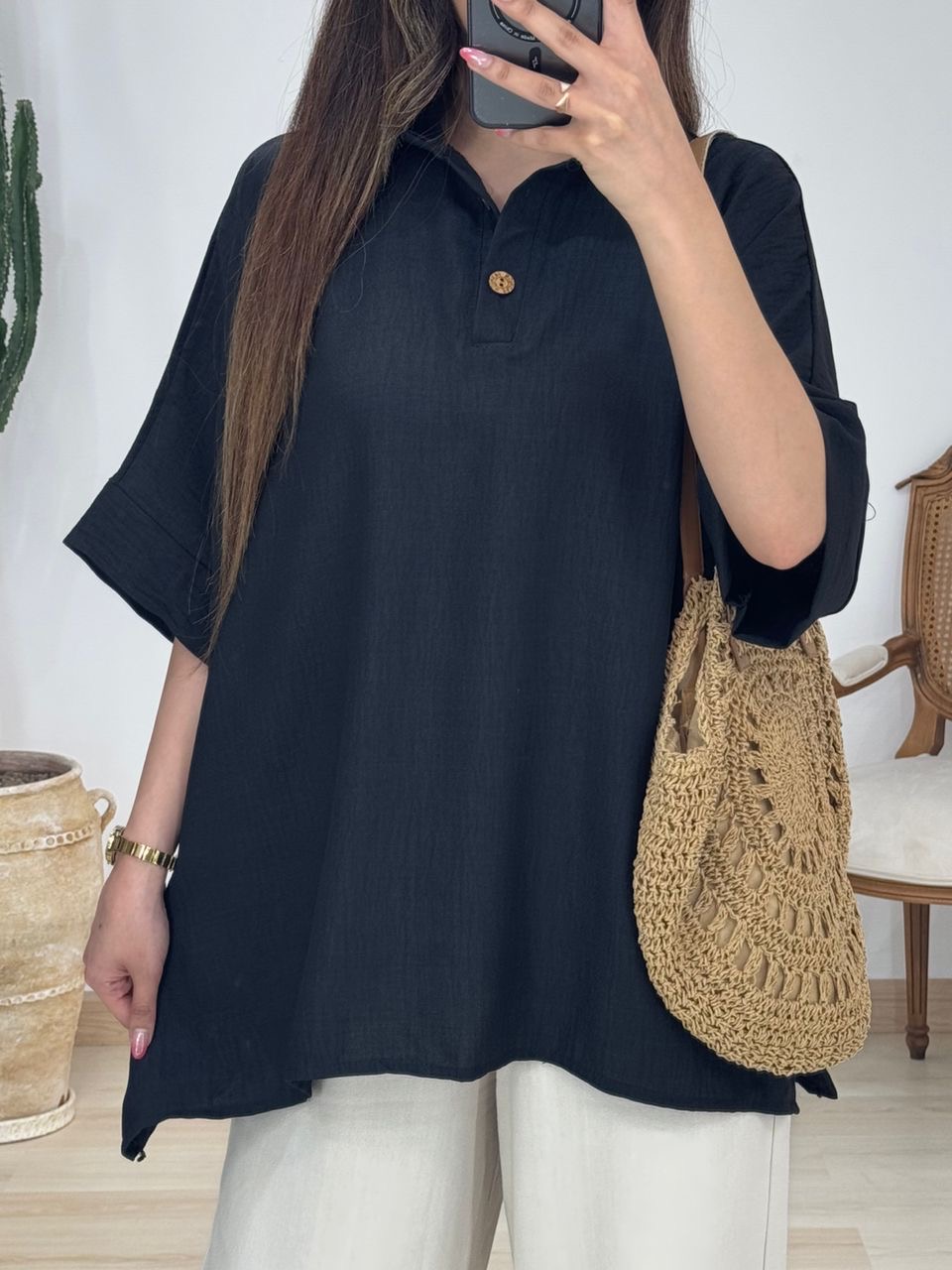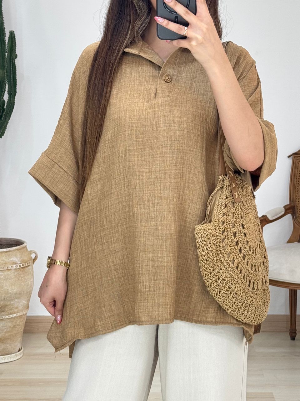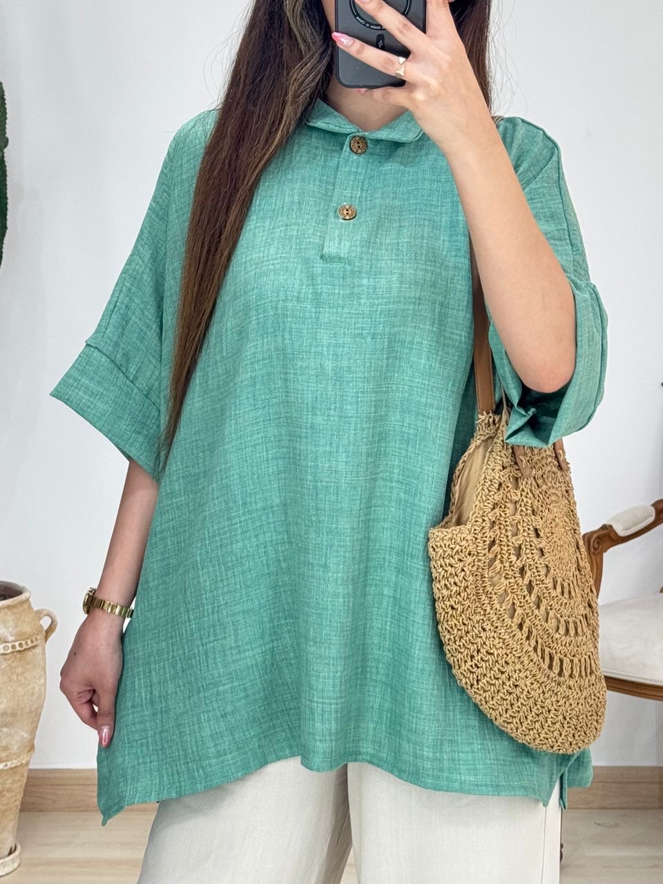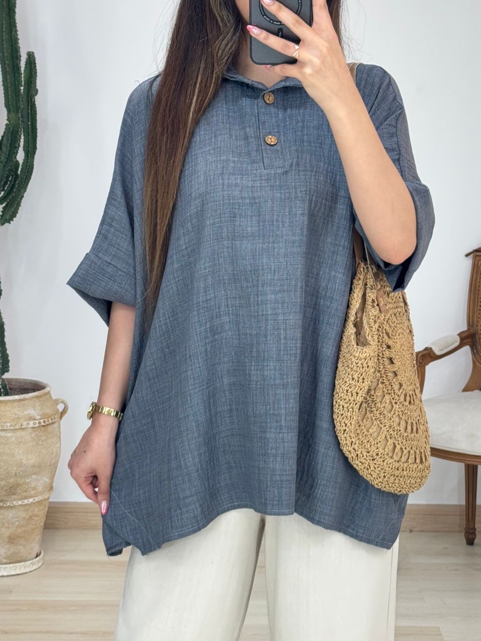 شومیز بغل دکمه چوبی کد 12570