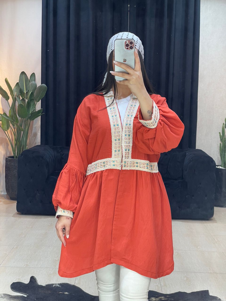 مانتو پیراهنی خامه دوزی آستردار کد 1054