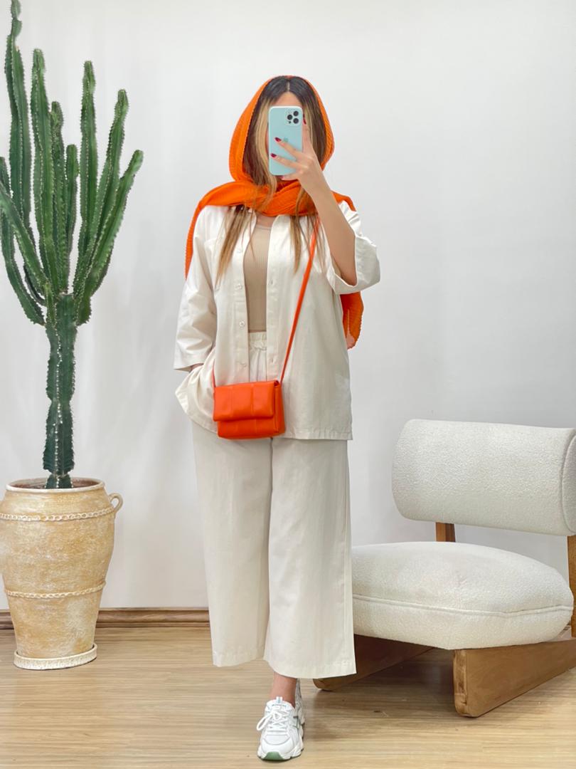 ست تونیک و شلوار دکمه چوبی کد 11916