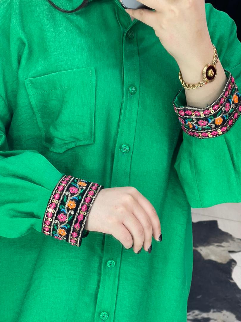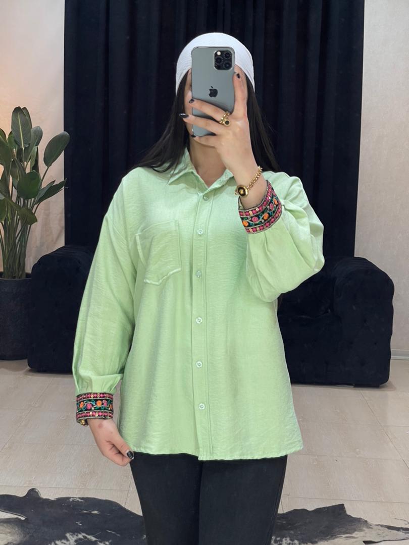 قد 73, دور سینه126, دور باسن 124, دور بازو 44، قد آستین 69