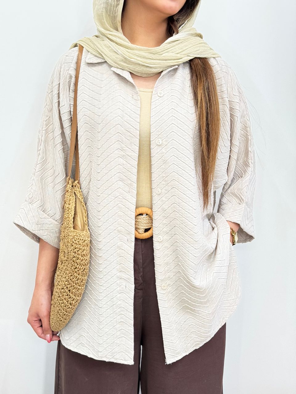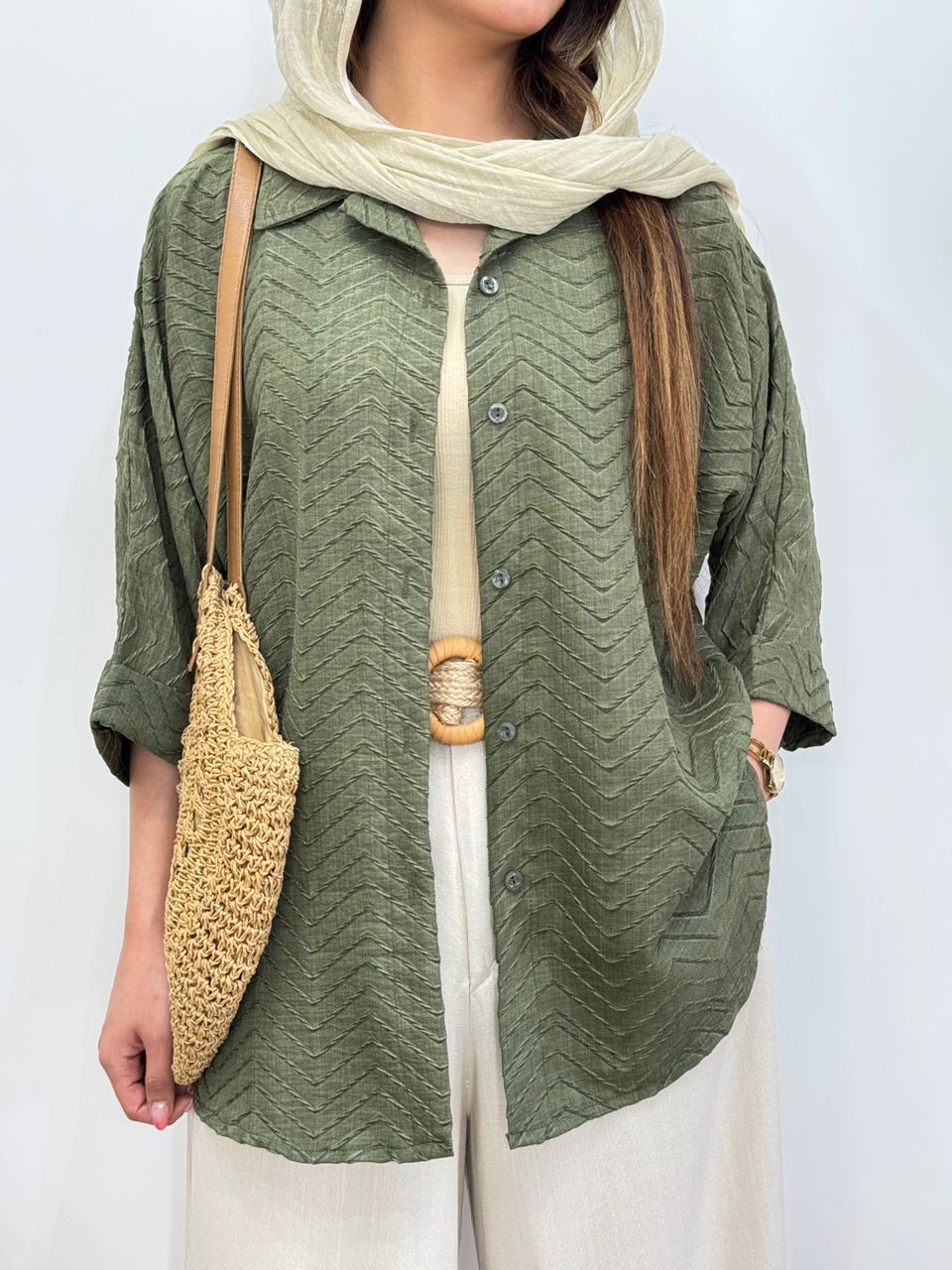 شومیز لینن ترک گل برجسته کد 12538
