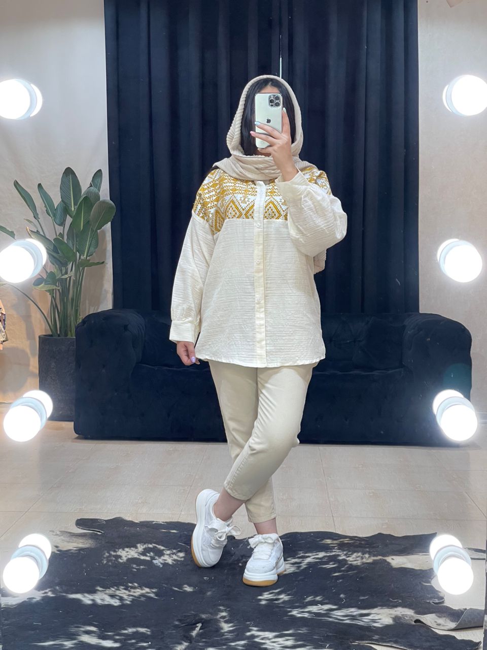 مانتو پیراهنی گلدوزی ترک آسا کد 1106