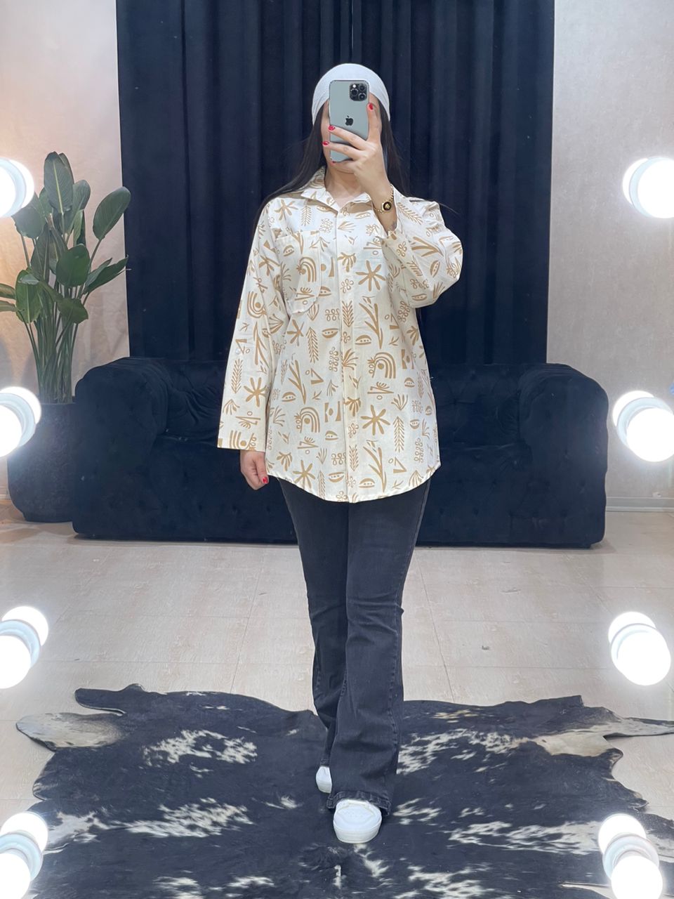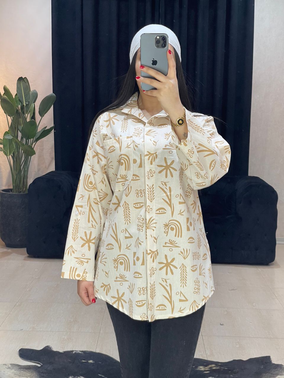 شومیز گندم قد 76, دور سینه 112,دور باسن 104,دور بازو 50,قد آستین 60