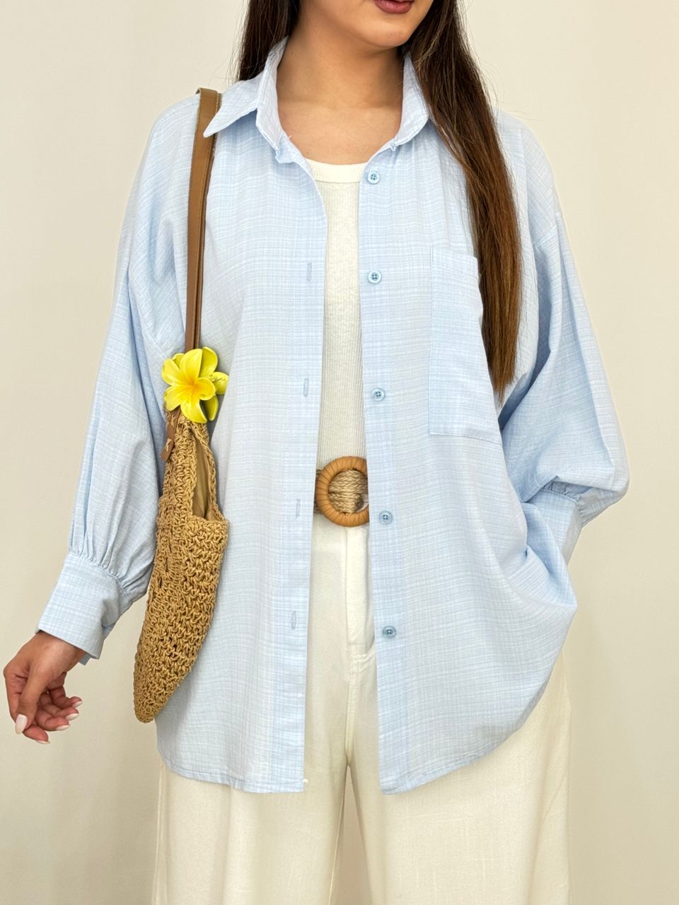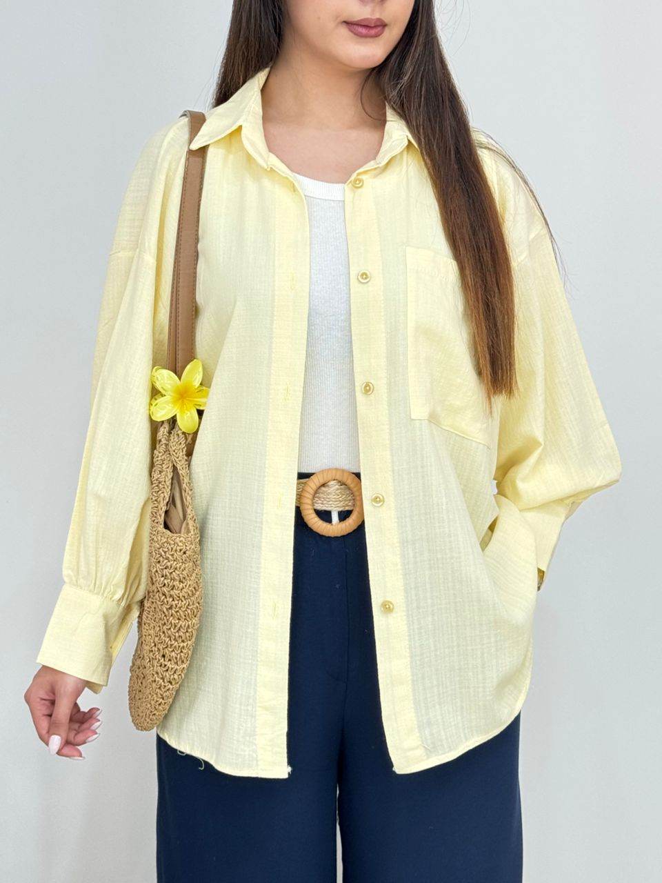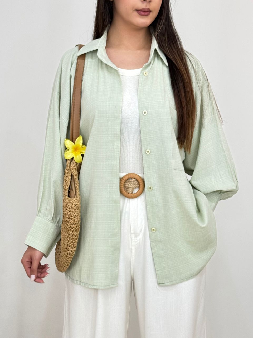 شومیز لینن یقه کوبایی کد 12744