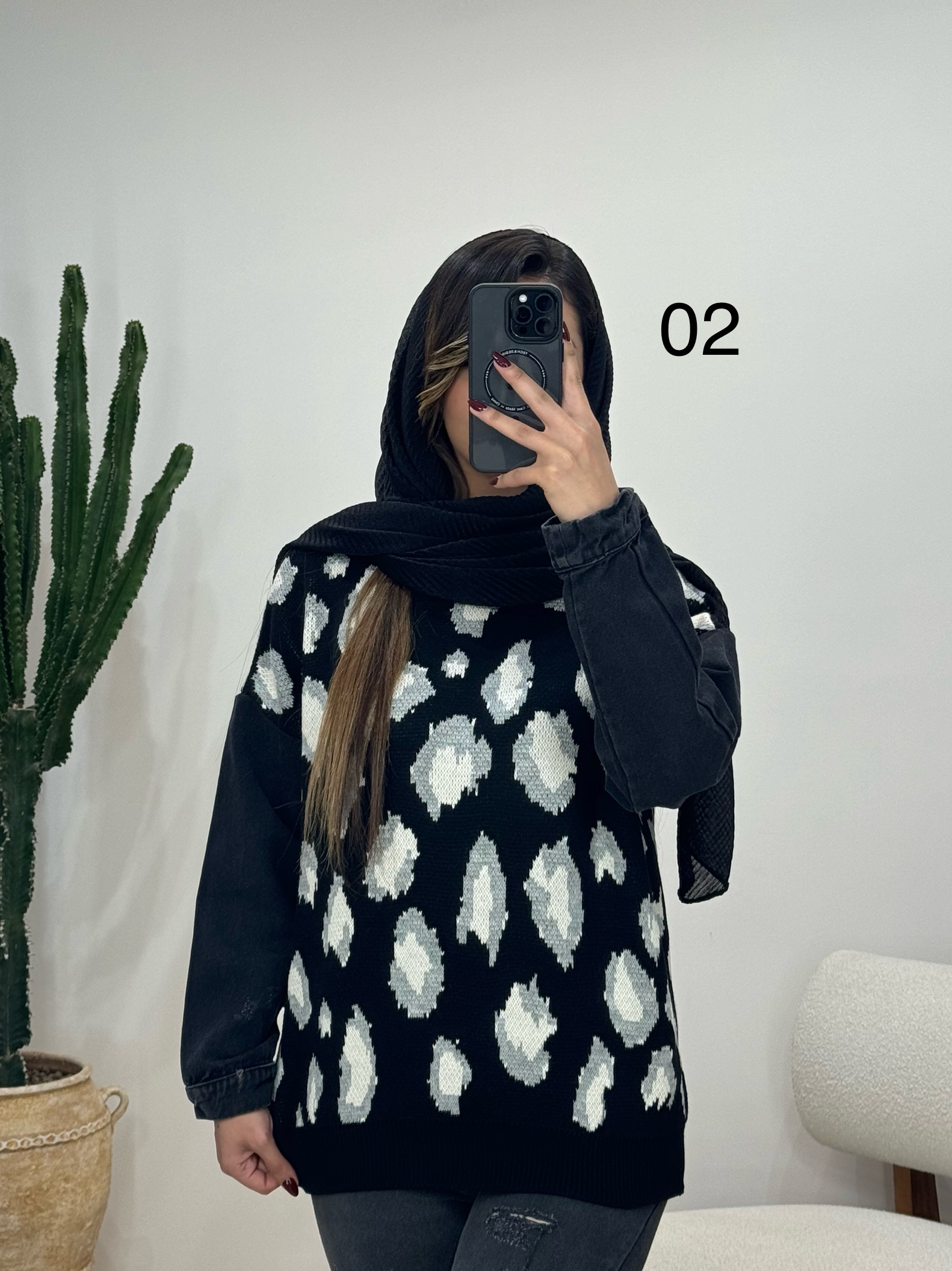 بافت پلنگی آستین جین کد 12227