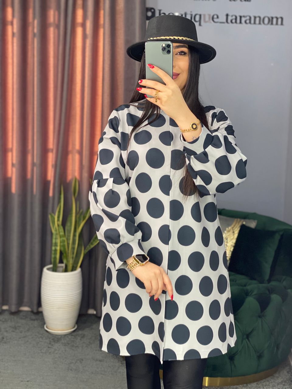 مانتو مازراتی استین پفی خالدار