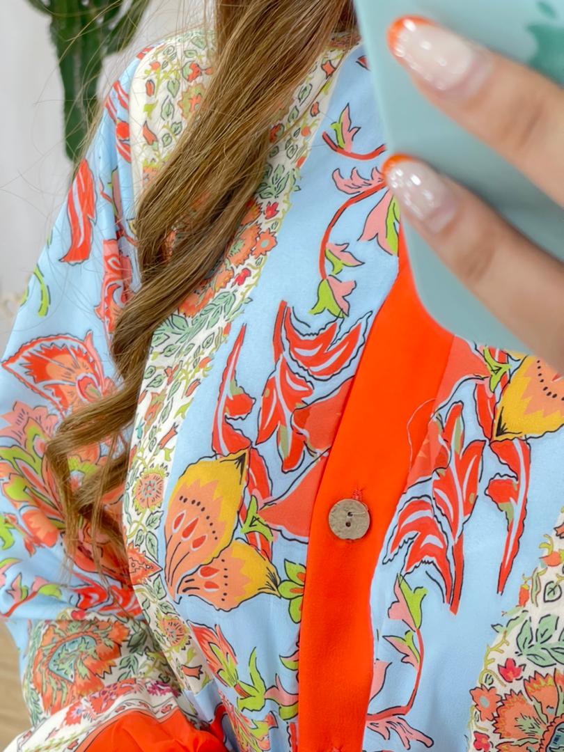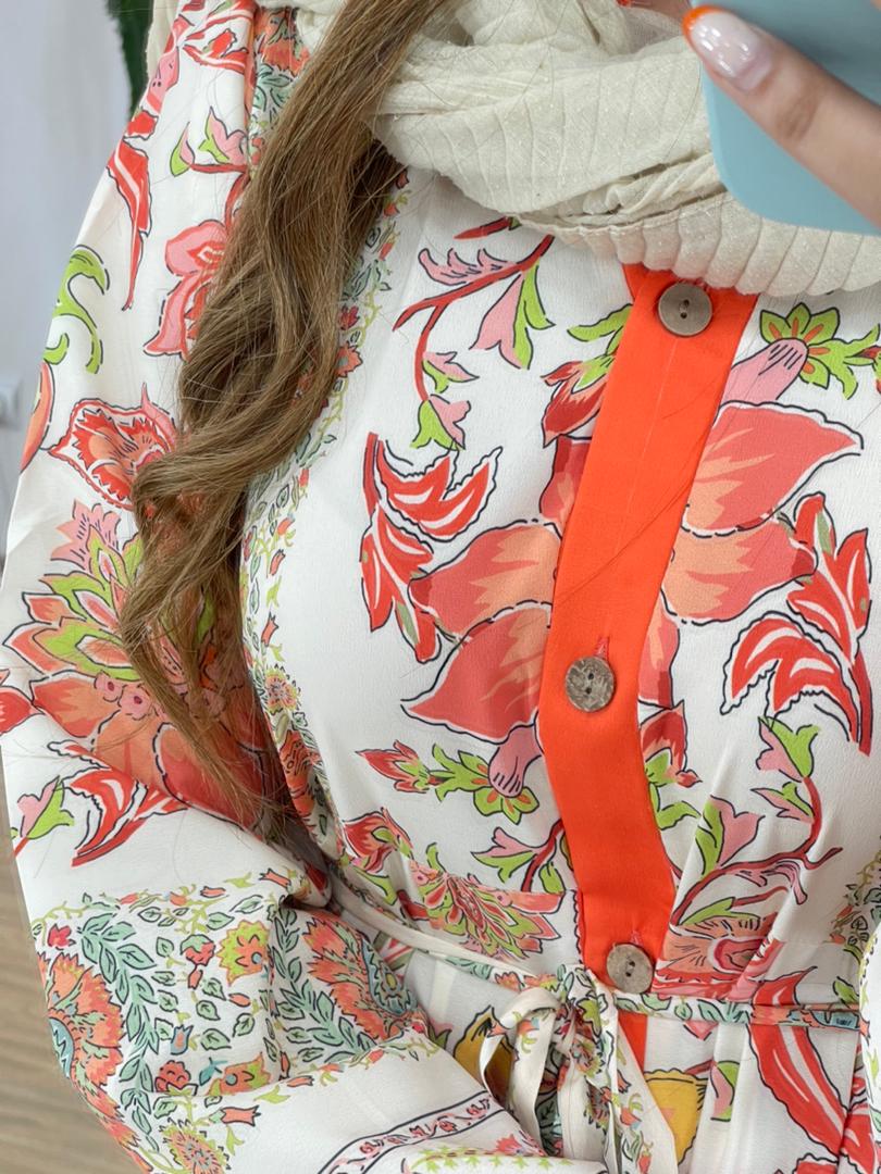 اوورال گلدار همراه کمربند کد 12063