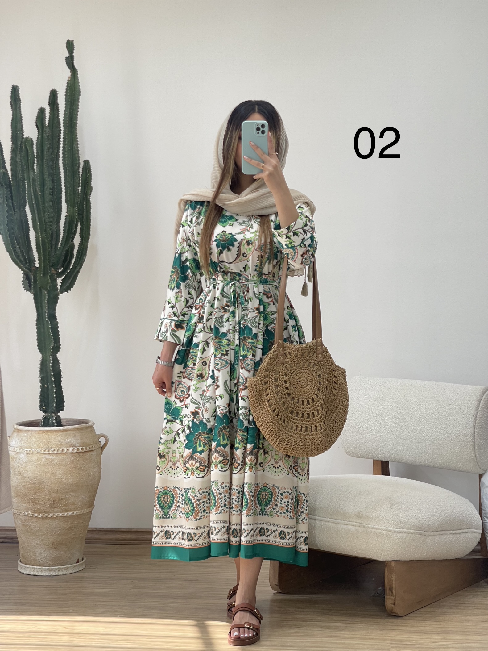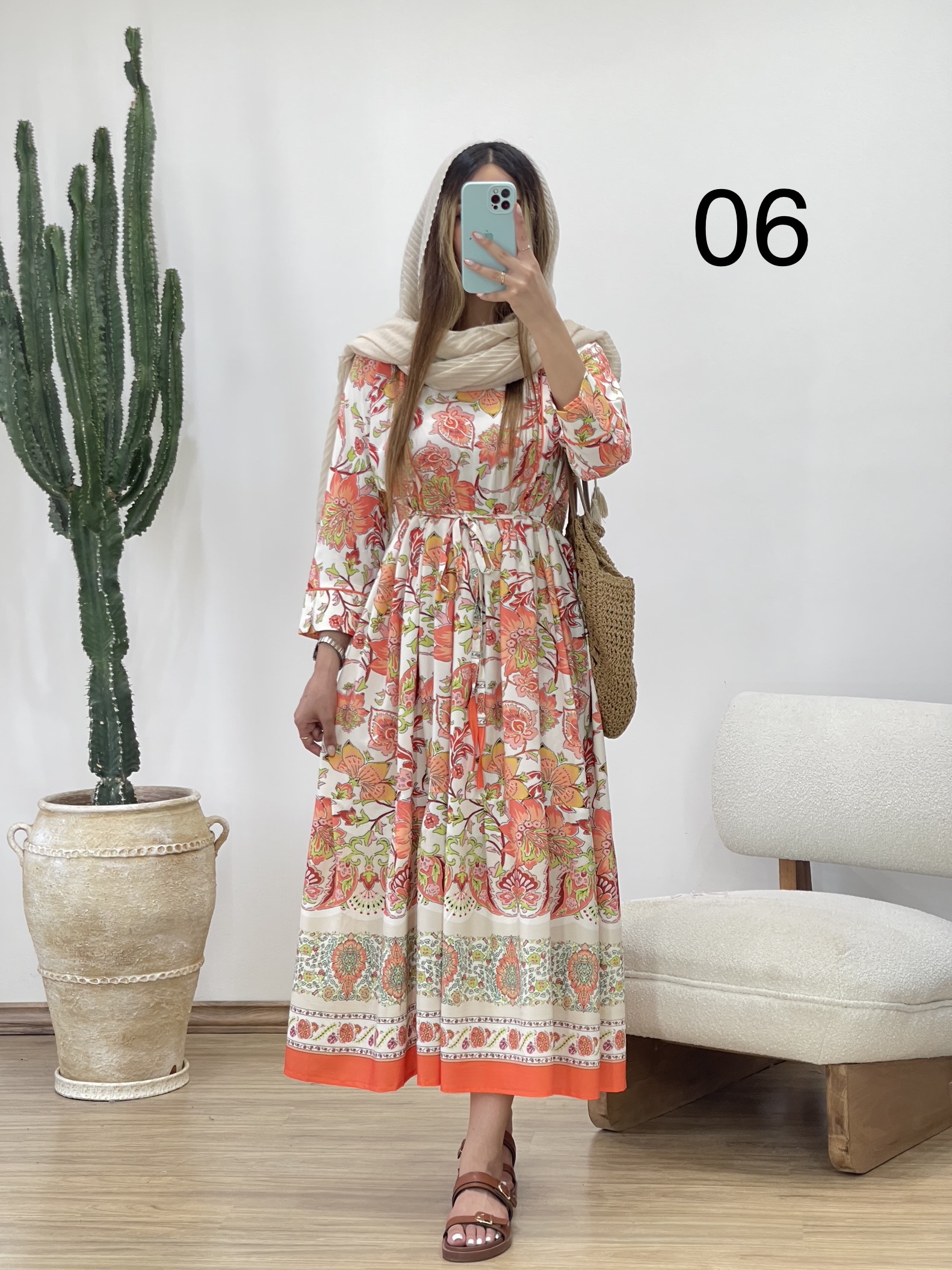 پیراهن طرح دار قد کل ۱۳۰ قد استین ۵۰ دور بارو ۴۶