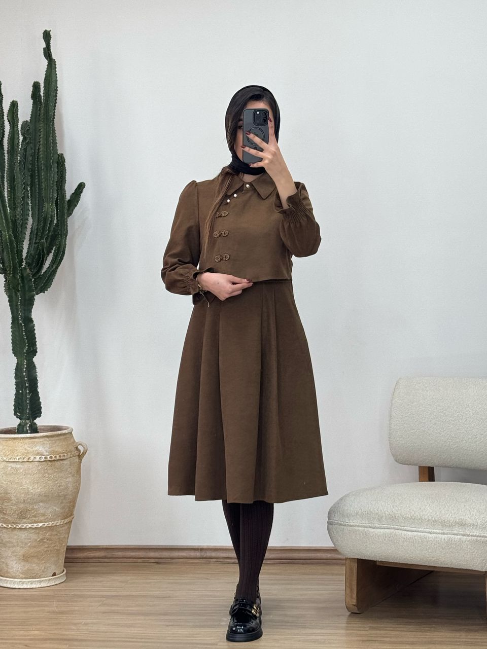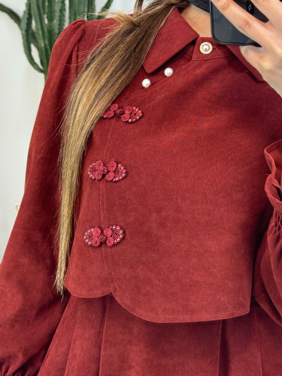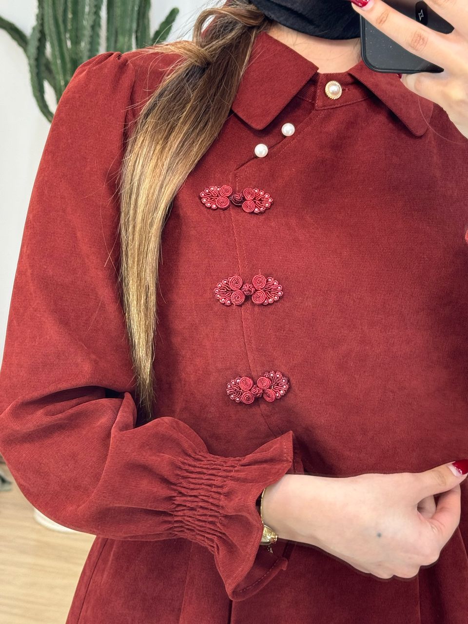 پیراهن خامه دوزی آستردار ترک کد 12308