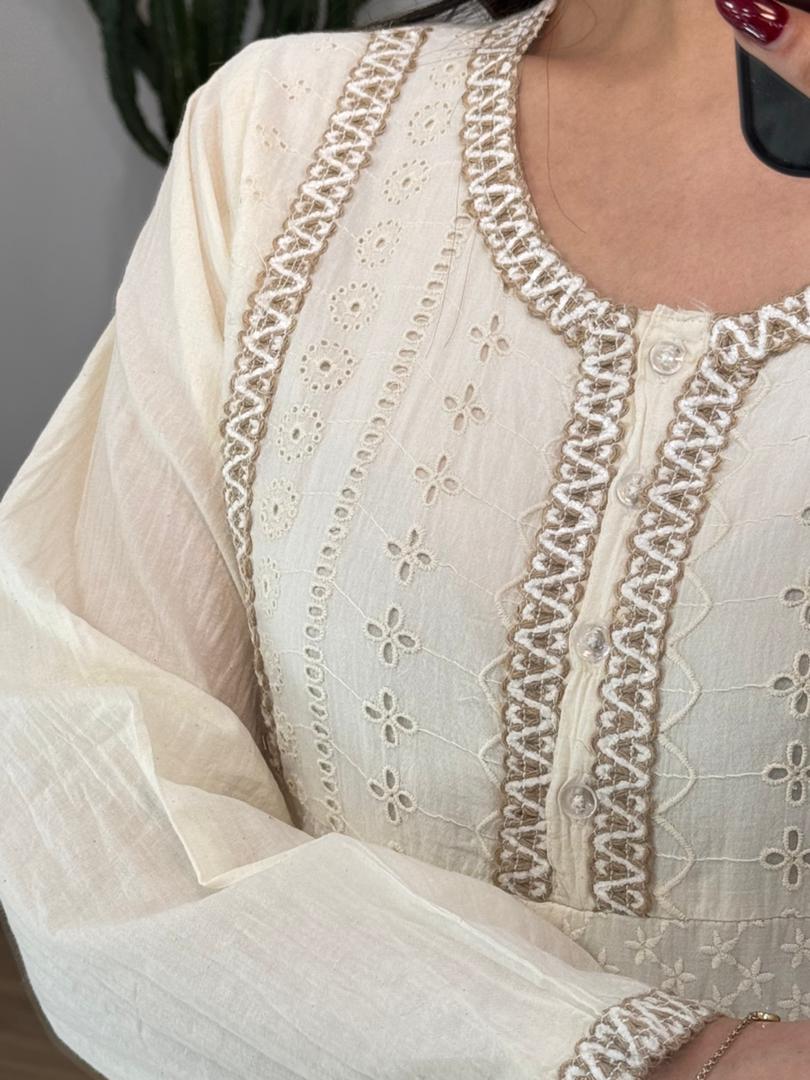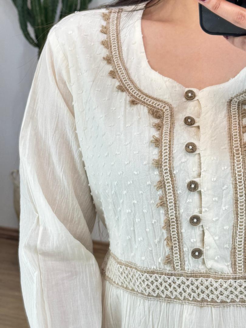 پیراهن خامه دوزی آستردار ترک کد 12655